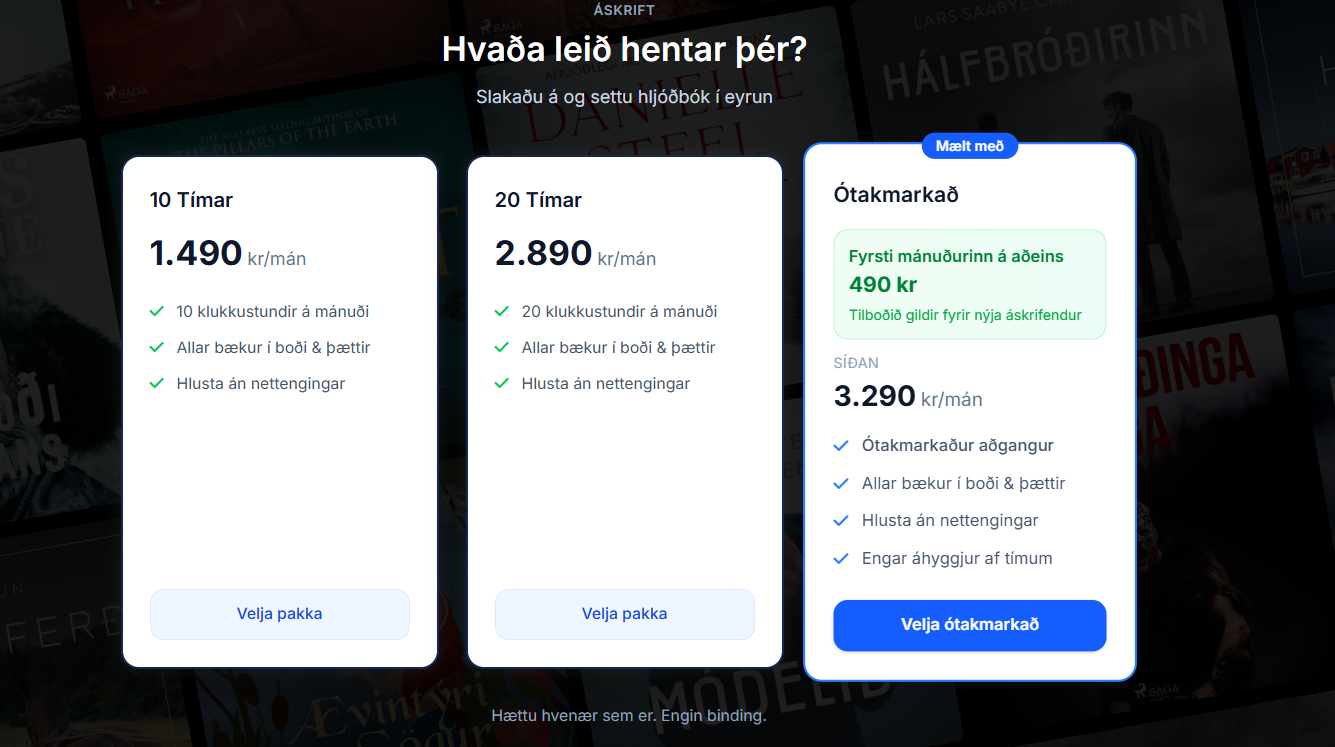 Neytendur á hinum Norðurlöndunum búa við virka samkeppni á hljóðbókamarkaði sem hefur leitt til fjölbreyttari áskriftarleiða og aukinna gæða.